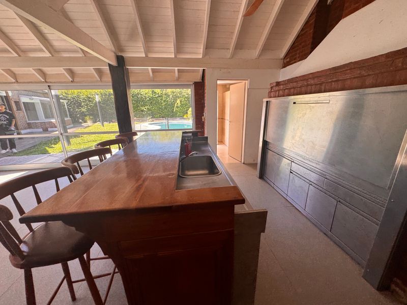 Código 8961-139 | Casa de 5 Ambientes, Completamente Reformada y Ampliada. La misma está integrada por living comedor y cocina integrada. Cuatro dormitorios, el principal en suite con hidromasaje y box de ducha. Los tres restantes con placard. Dos baños completos. Depósito. Galería con deck de madera. Quincho con parrilla, segunda cocina y baño completo con vestuarios. Pileta climatizada y revestida con venecita. Garage cubierto para dos autos. El estado de conservación es excelente, con techo de tejas y pisos de porcelanato. Refrigeración con A/A y calefacción central. Aberturas doble vidrio y postigos de aluminio. BARRIO PRIVADO CAMPOS DE ECHEVERRIA El mismo se encuentra emplazado en Canning, en el partido de Esteban Echeverría, a 500 mts. de la Ruta 52, a la altura del Km.3,7. Totalmente consolidado, está formado por 25 hectáreas con 246 lotes de 600 m2 en adelante, hasta los 1.100 mts. Cuenta con Club House donde se lleva a cabo la actividad social y funciona un restaurante de categoría para los propietarios. En sus inmediaciones se hallan la proveeduría, el Sum y una plaza con juegos para chicos. Además, ofrece la más completa infraestructura deportiva compuesta por: piscina para grandes y chicos, vestidores, solarium, una cancha de fútbol 5 y otra 11, 2 de tenis de polvo de ladrillos y 2 de paddle, gimnasio con aparatos Posee los servicios de electricidad, agua corriente, red cloacal interna, gas natural y teléfono. Todos ellos por conexiones subterráneas. Seguridad las 24 horas. Notas: La información y medidas suministradas son aproximadas y deberán ratificarse con la documentación pertinente, y no compromete contractualmente a nuestra empresa. Las Fotografías provistas no son vinculantes ni contractuales. Pendiente de cumplimentar COTI. SCARNATO Negocios Inmobiliarios CPMCLZ N4318 L8 F225