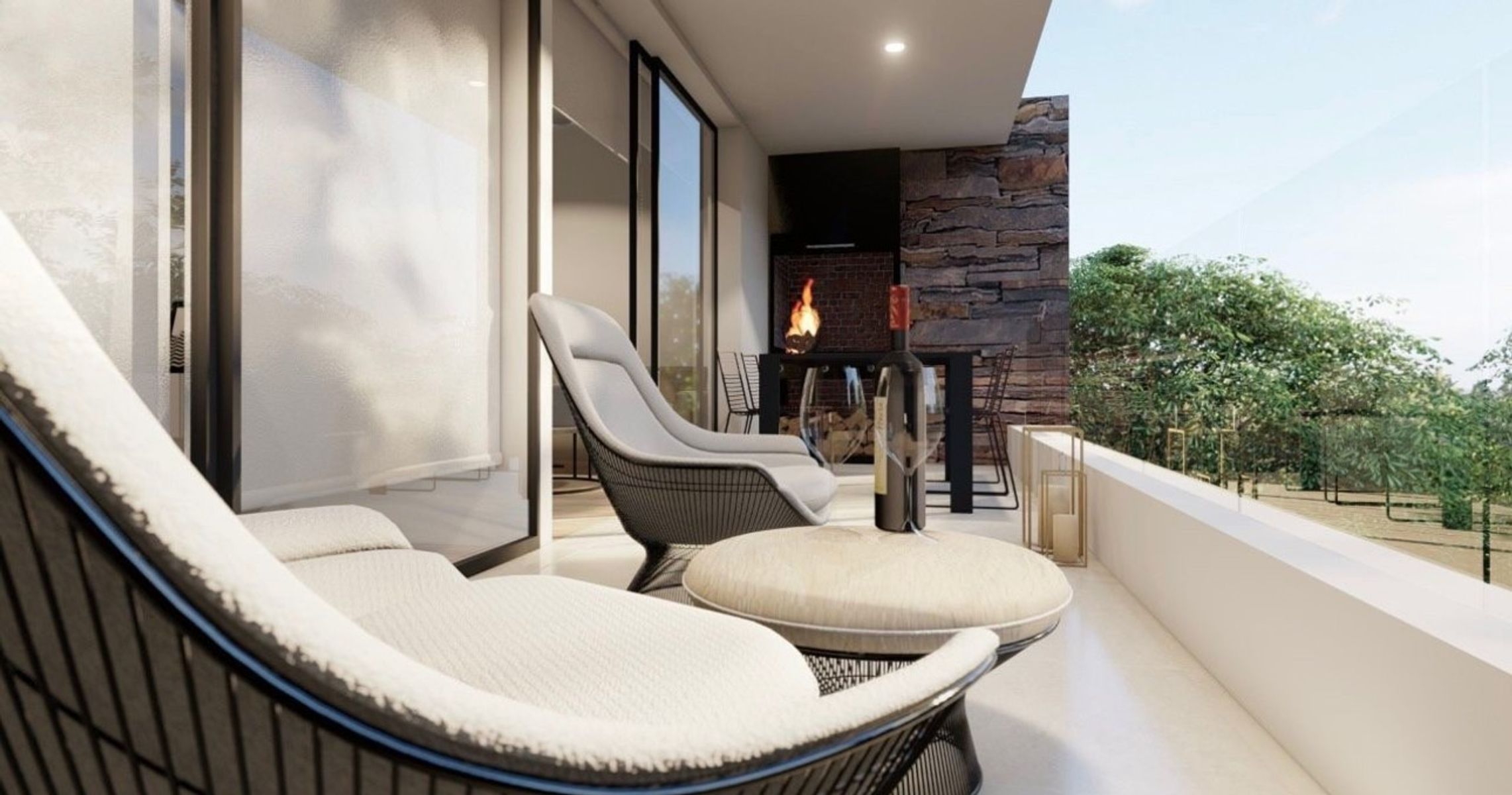 Departamentos con balcón aterrazado con parrilla propia, en tipologías de 2 ambientes y 3 ambientes.