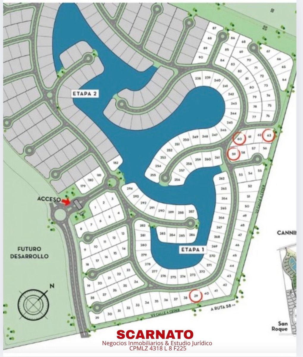 Código 8961-377882 | Lotes en venta en el barrio cerrado "San Antonio" - Canning Village Posesión: Febrero 2026 Lote de 600m² aprox dentro del barrio "San Antonio", barrio que forma parte de Canning Village. Servicios: luz, agua, cloacas y gas, todo por red subterránea. Amenities: seguridad, laguna central, canchas de fútbol, tenis y paddle. Lote con vista a la laguna central. Accesos: Ruta 58 y Ruta 52 (aún en obra) Ubicación: próximo a San Simón, San Roque, San Felipe, Principado Náutico y del nuevo colegio Grilli Principado (inaugurado en 2025), Los Talas, Lauquen, Don Joaquín, etc. Venta: por cesión de derechos, ya que todavía no se puede escriturar. Desarrolladora: EIDICO Construcción: se admite cualquier sistema tradicional, incluido Steel Frame. Notas: La información y medidas suministradas son aproximadas y deberán ratificarse con la documentación pertinente. No comprometen contractualmente a nuestra empresa. Las fotografías provistas no son vinculantes ni contractuales. Pendiente de cumplimentar COTI. SCARNATO Negocios Inmobiliarios CPMCLZ N° 4318 - L8 F225